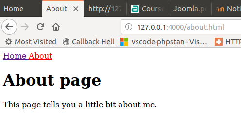 Si queremos hacer una nueva página, por ejemplo about.html podríamos copiar index.html y modificarlo.
