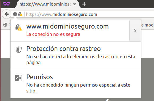 Ahora debemos tener SSL activado en nuestro sitio web. Esto asegurará las comunicaciones entre los visitantes y nuestro servidor, pero mostrará un aviso a cada usuario ya que el navegador no puede verificar la validez del certificado.