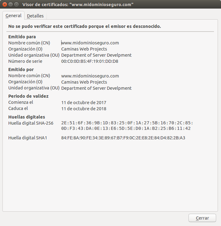 Si visualizamos el Certificado en el navegador, veremos lo siguiente: