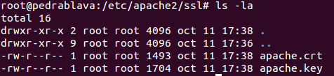 La clave y el certificado serán creados y colocados en el directorio /etc/apache2/ssl.
